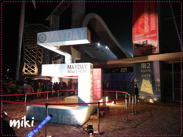 今日節目:五月天MAYDAY一堆人,原來是外面在排紀念章,但整個來不及,我們直接先奔找入口去了!